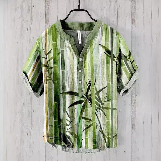 National Bamboo Printing Men's Shirt 3D Digital Printing Elegant Style